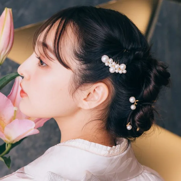 上品な振袖にパールをプラスし、大人可愛いスタイリングに