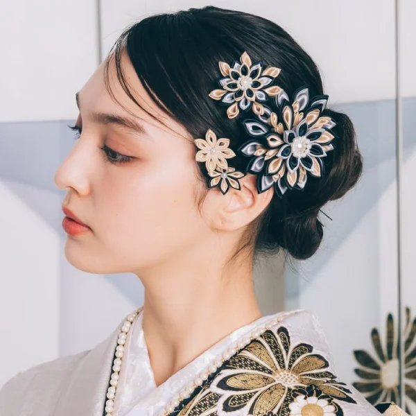 伝統的なつまみ細工で色味をシックにすると落ち着いた印象に
