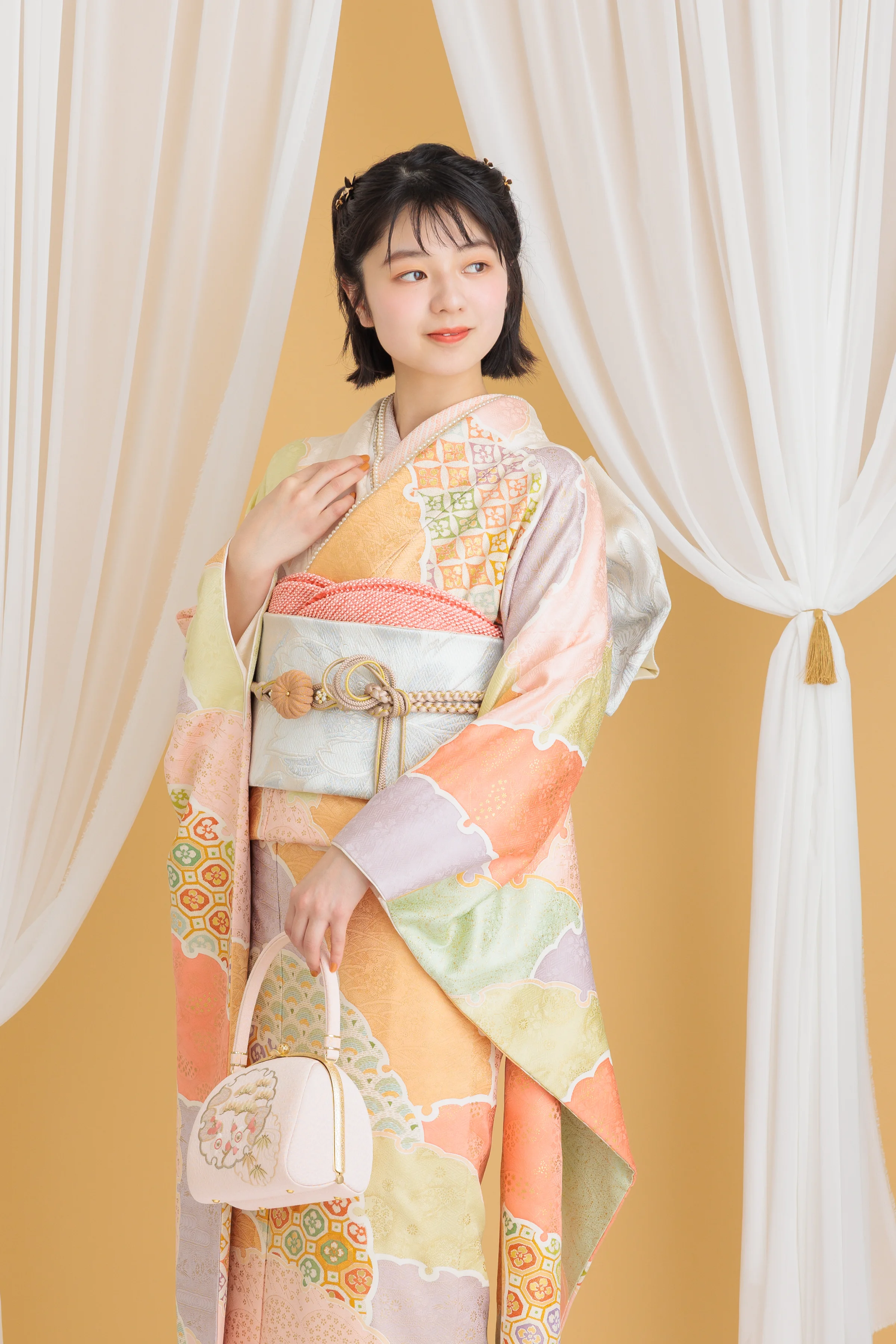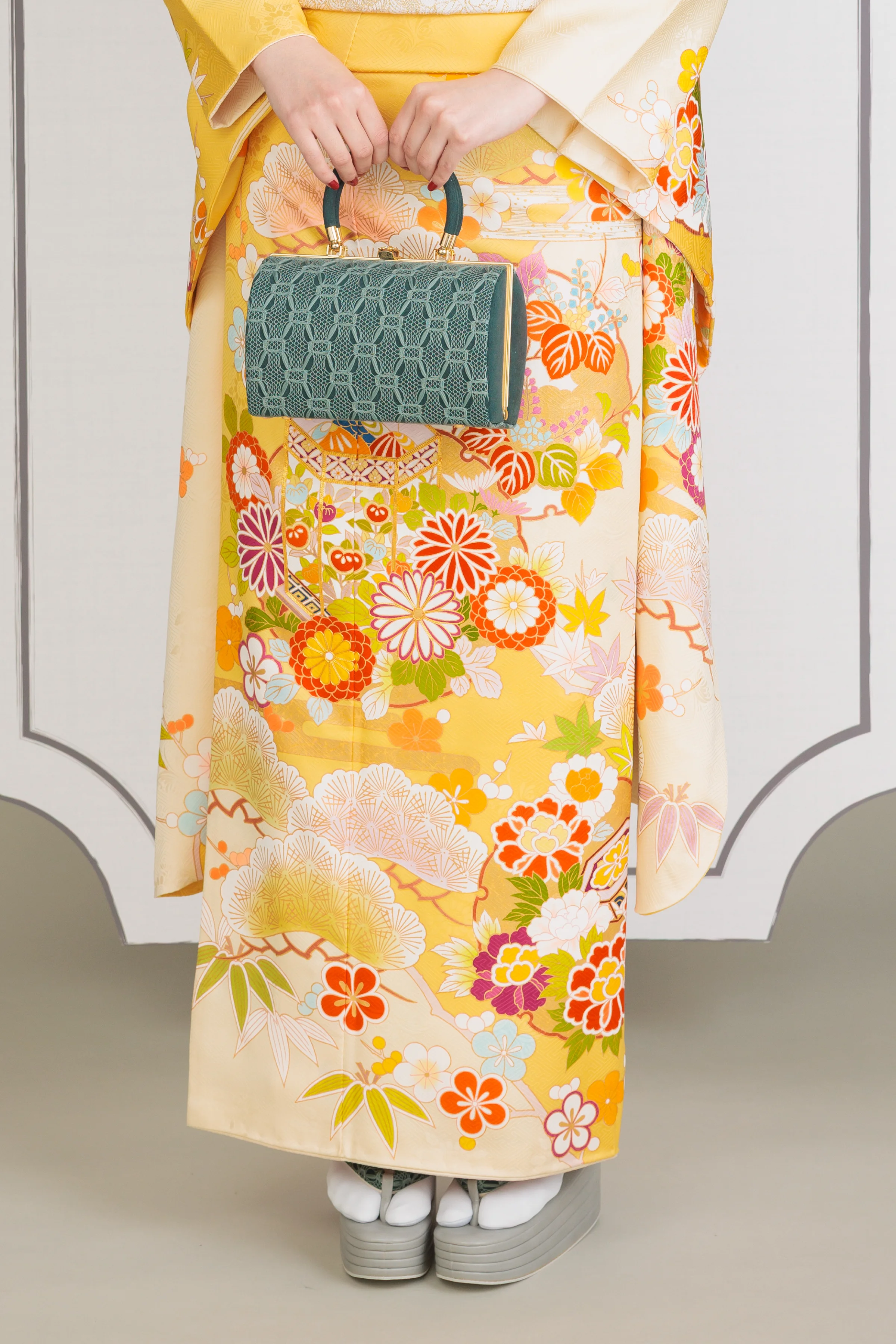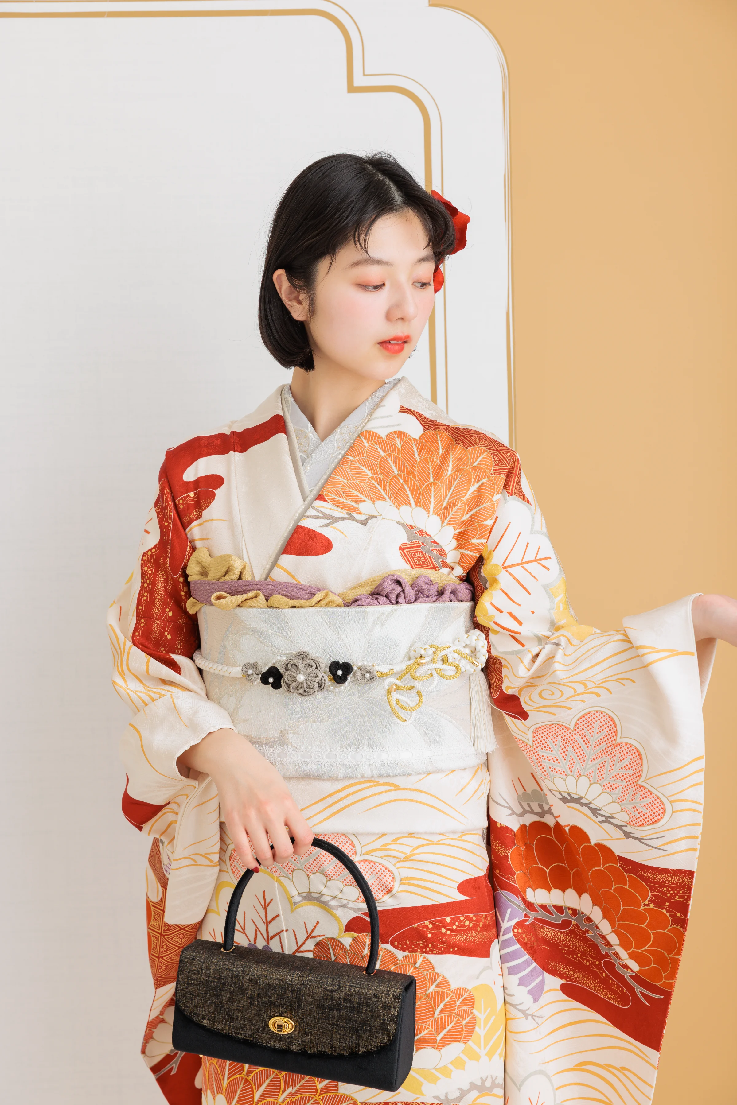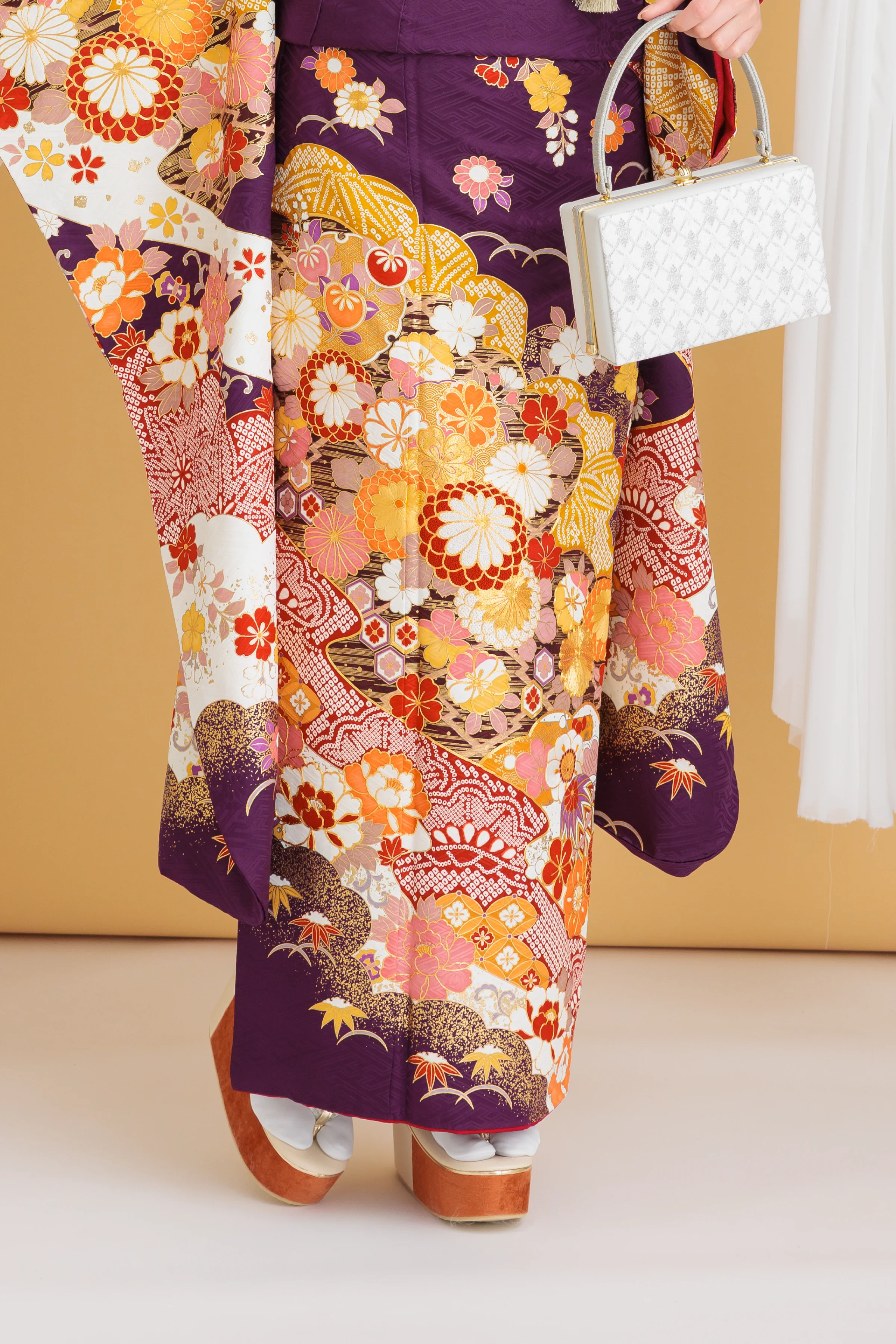 振袖コーディネートには小物スタイリングが重要!グランジュールなら、バッグや草履、帯などお洒落な小物をお選びいただけます。