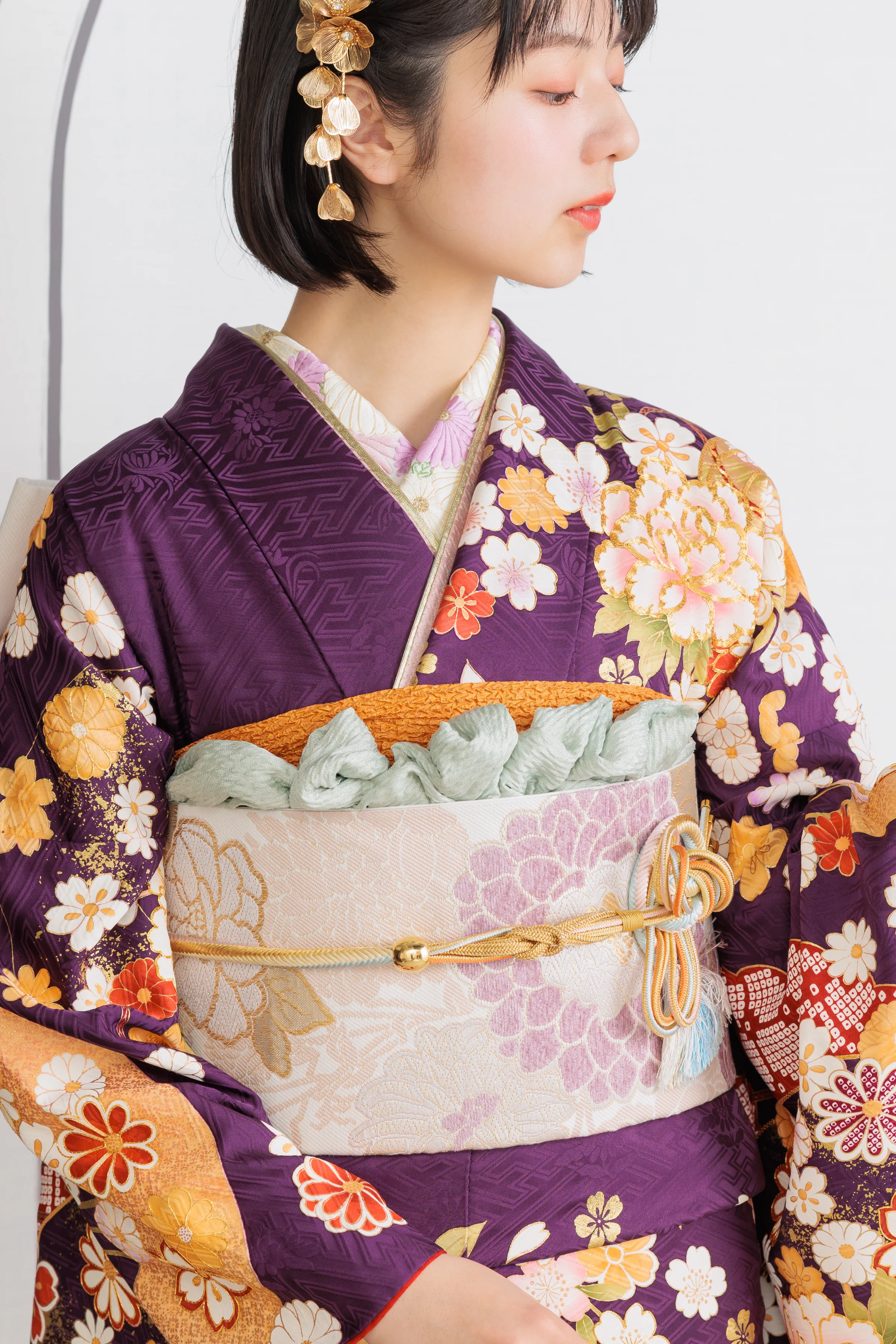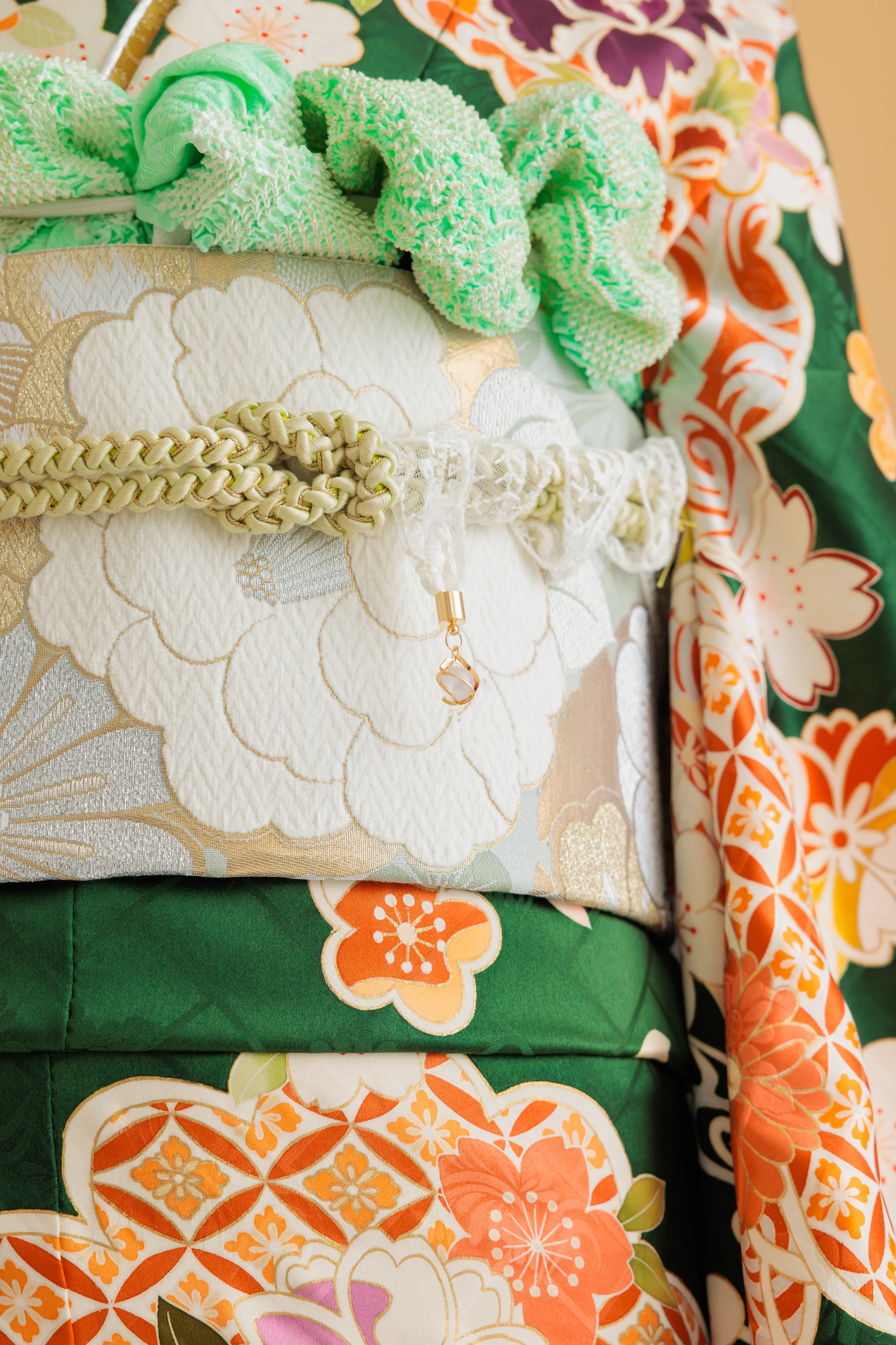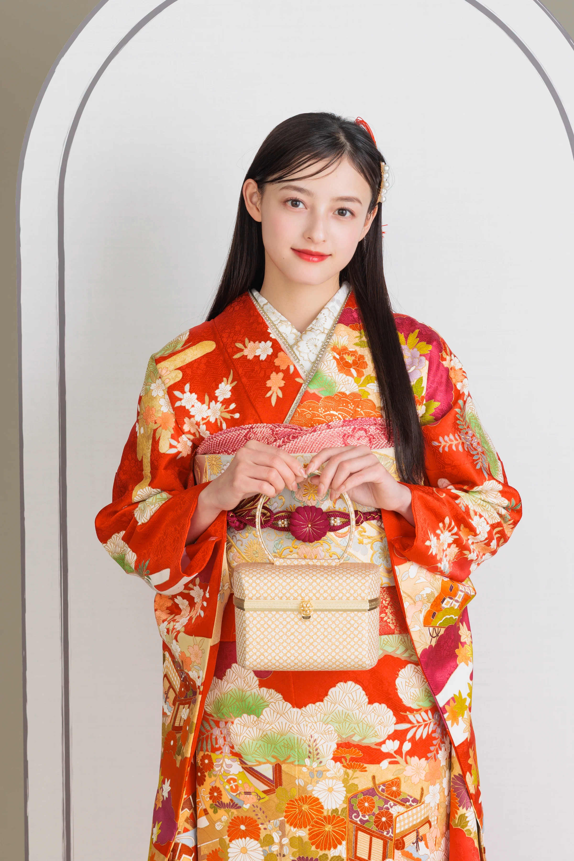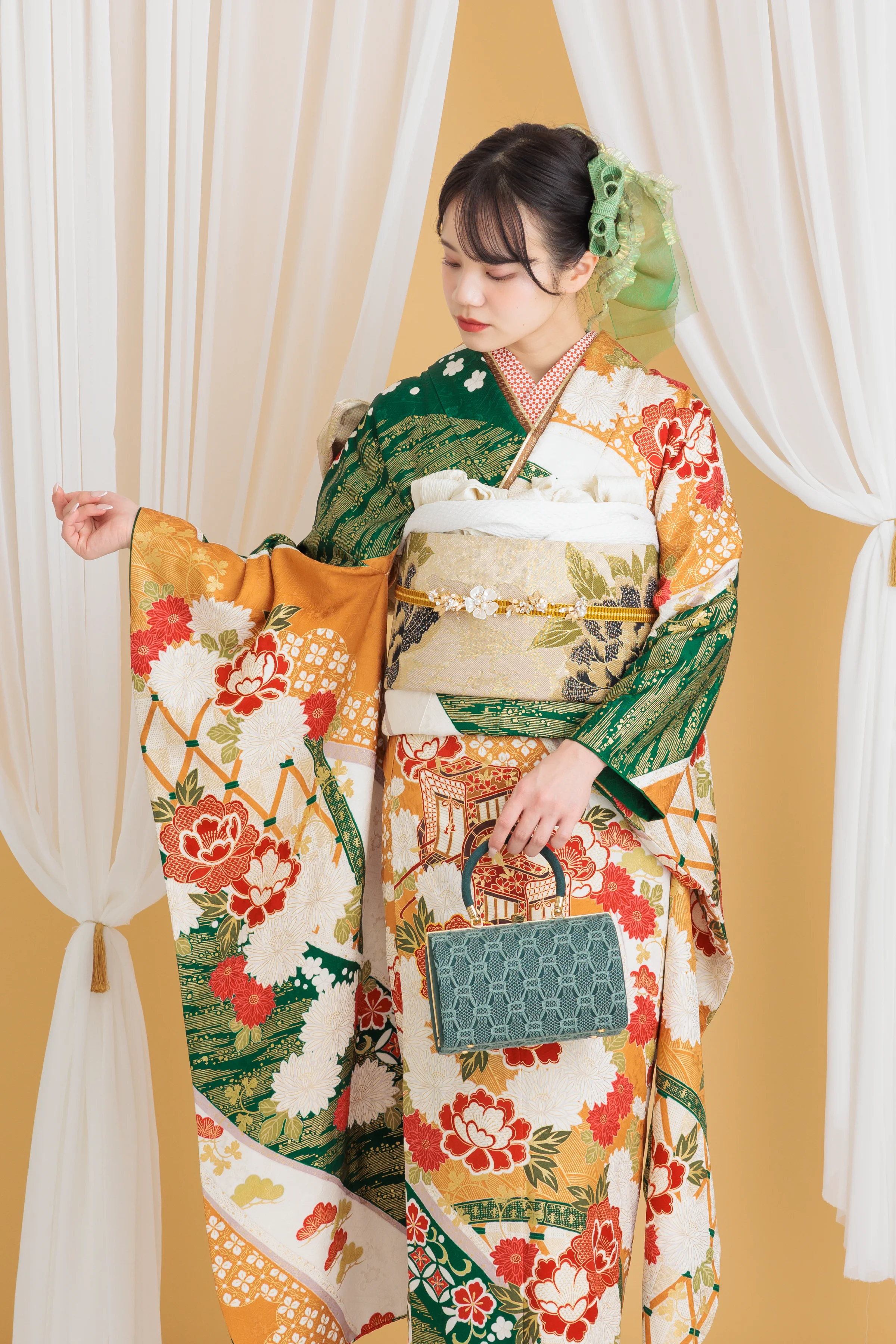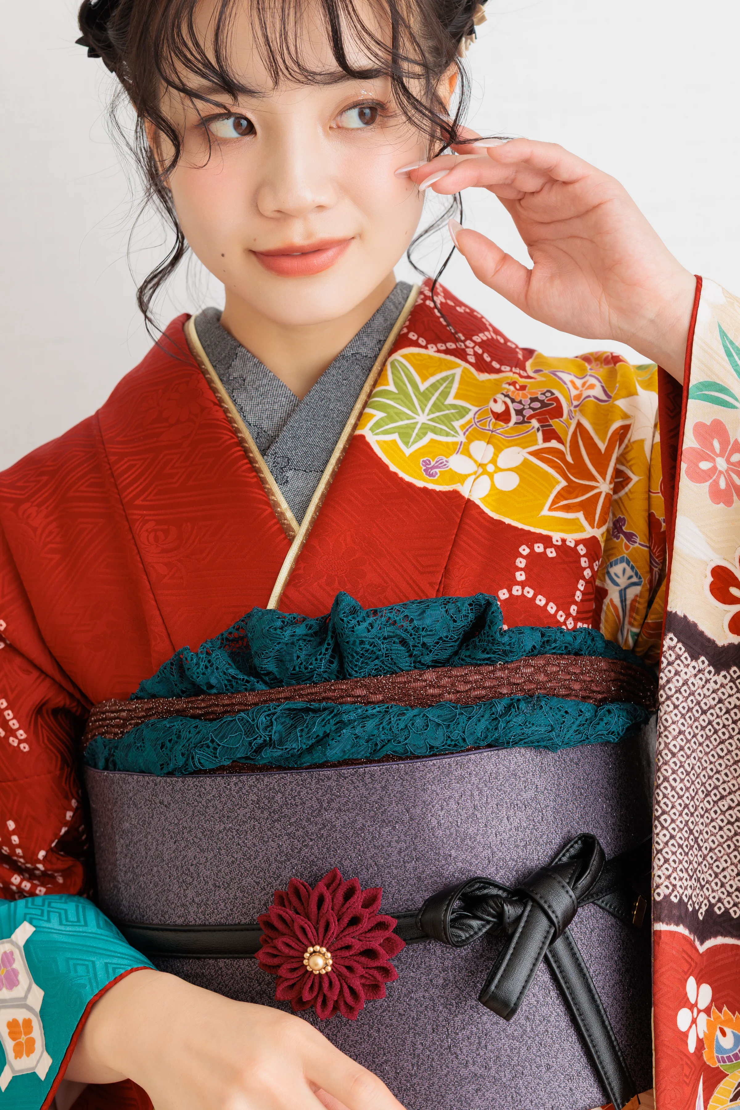 振袖コーディネートには小物スタイリングが重要!グランジュールなら、バッグや草履、帯などお洒落な小物をお選びいただけます。