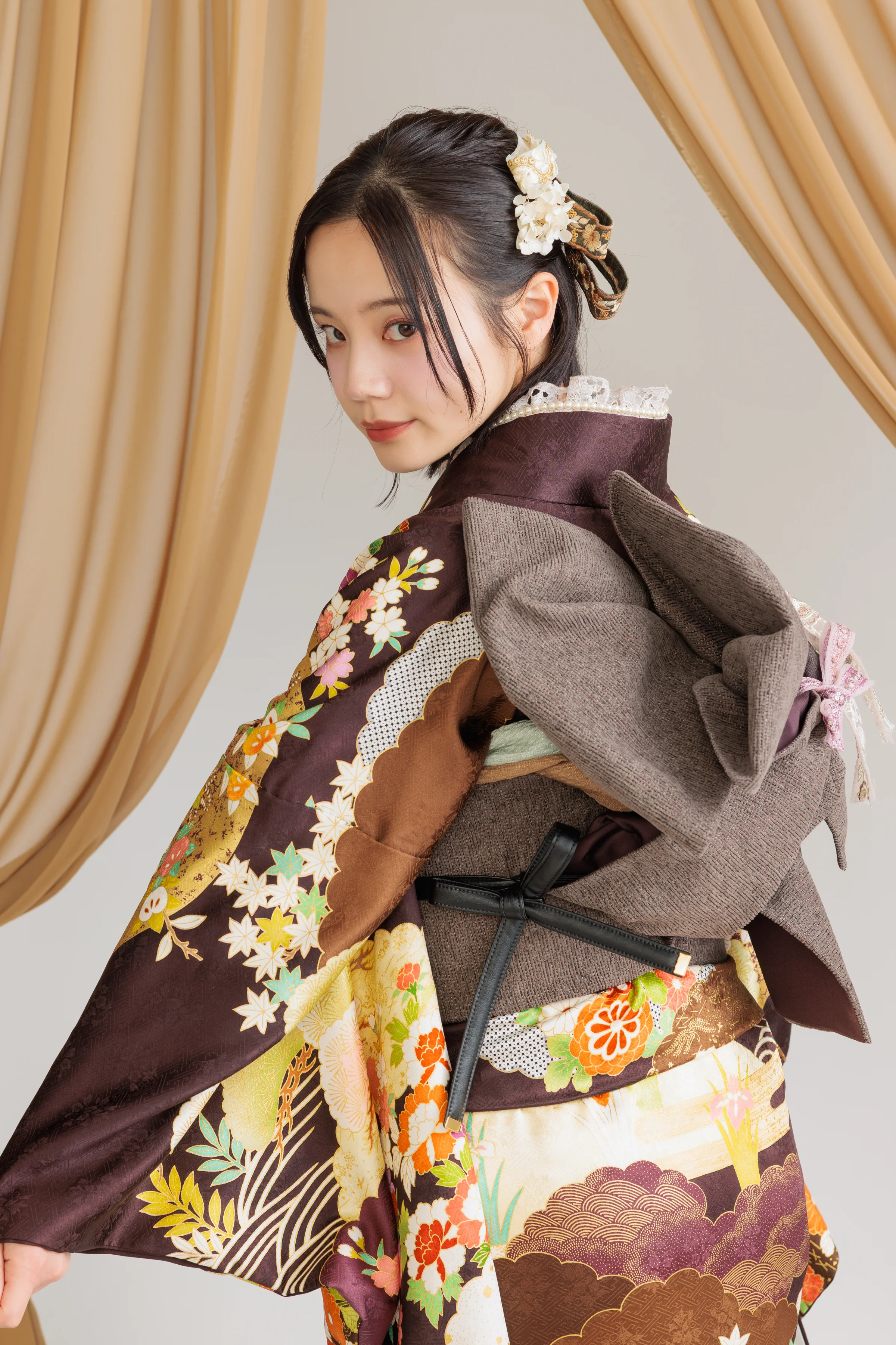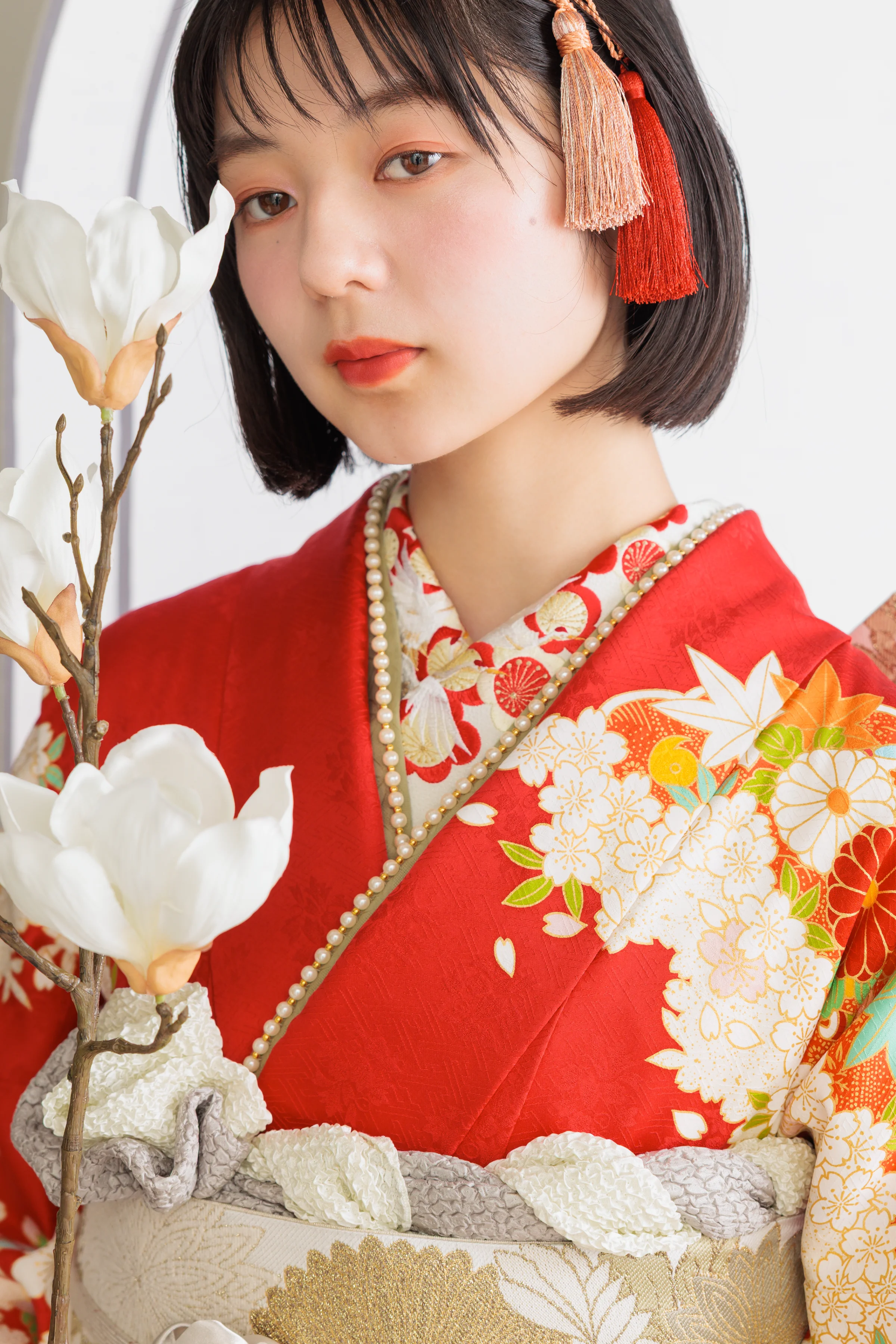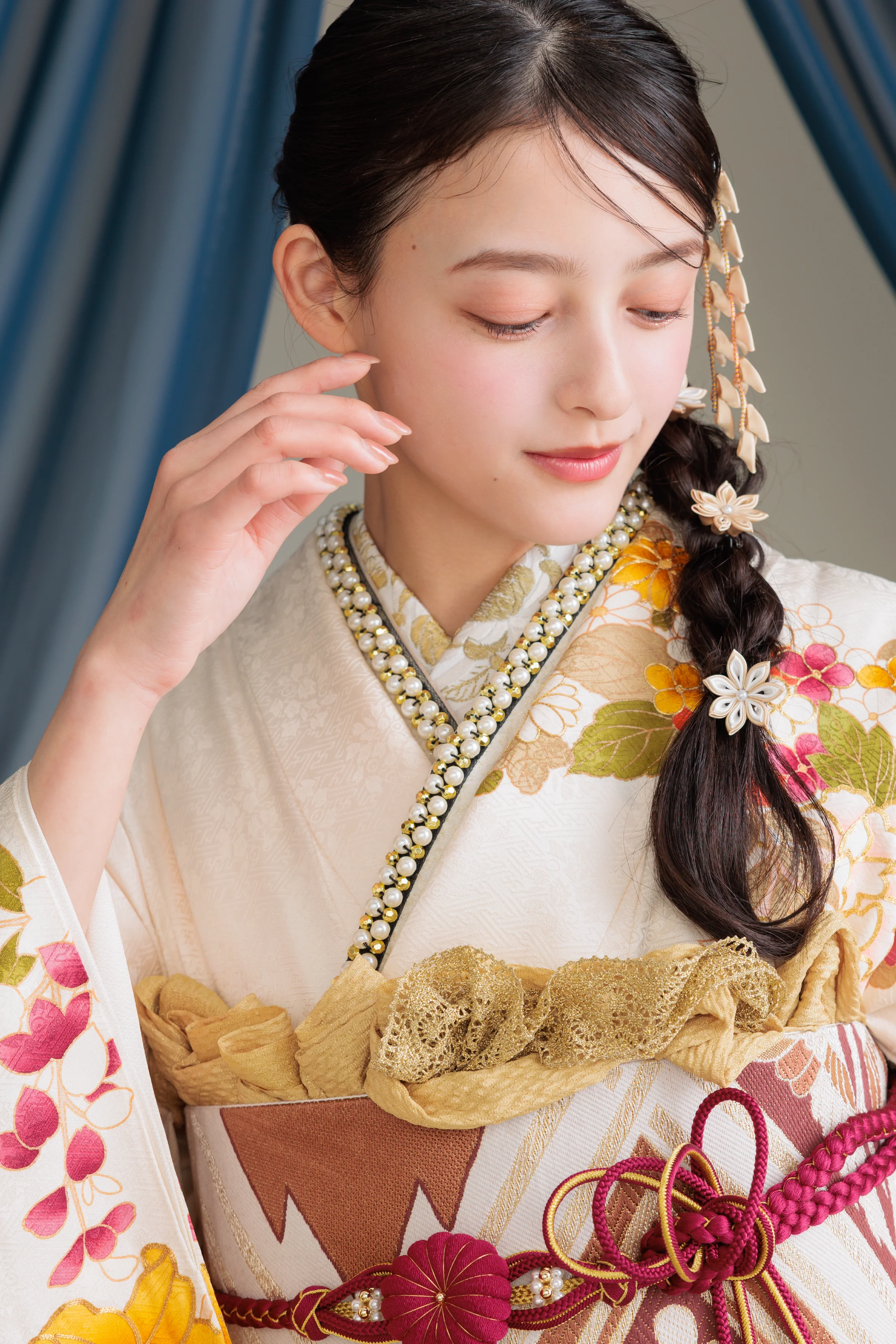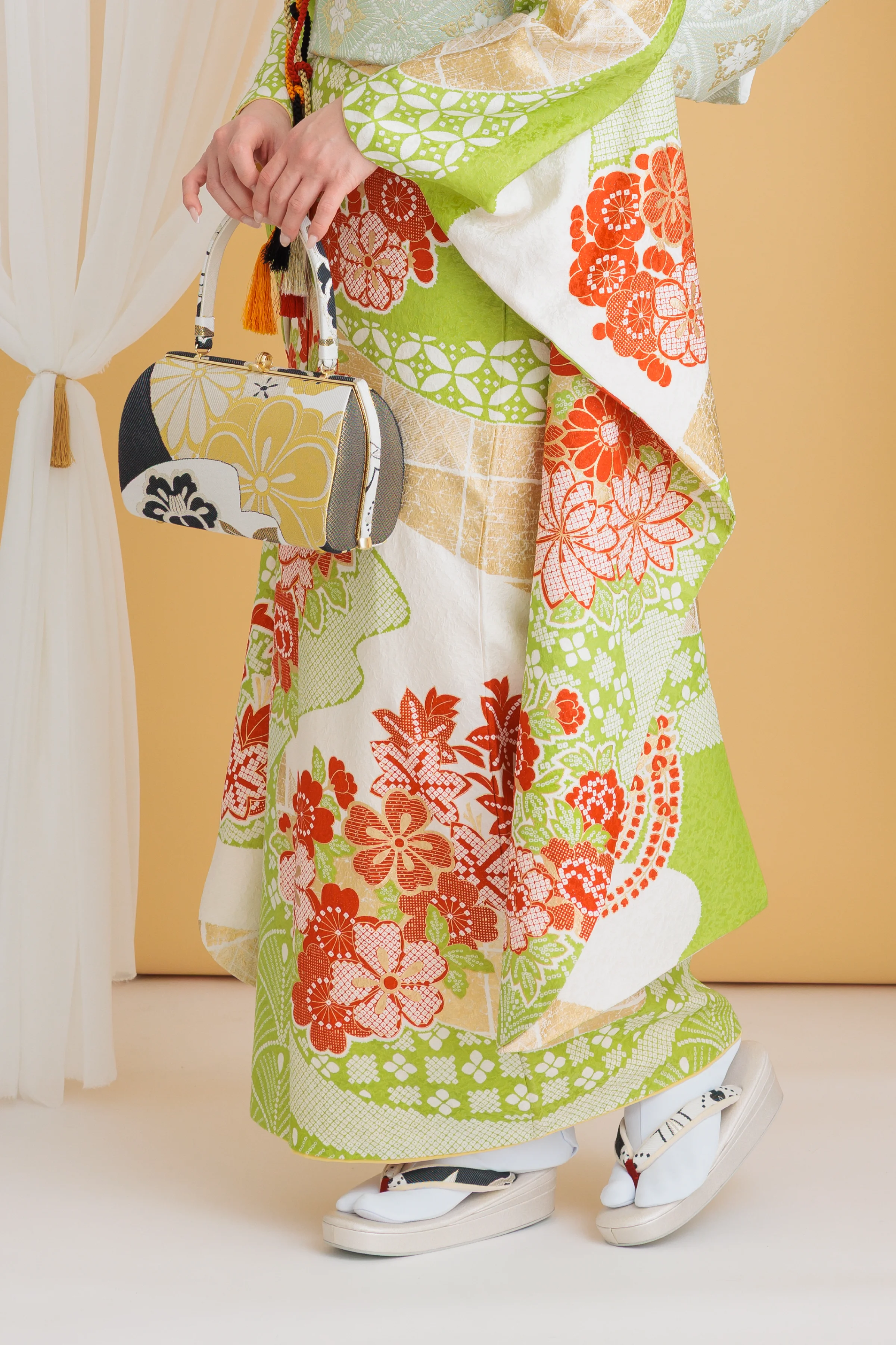振袖コーディネートには小物スタイリングが重要!グランジュールなら、バッグや草履、帯などお洒落な小物をお選びいただけます。