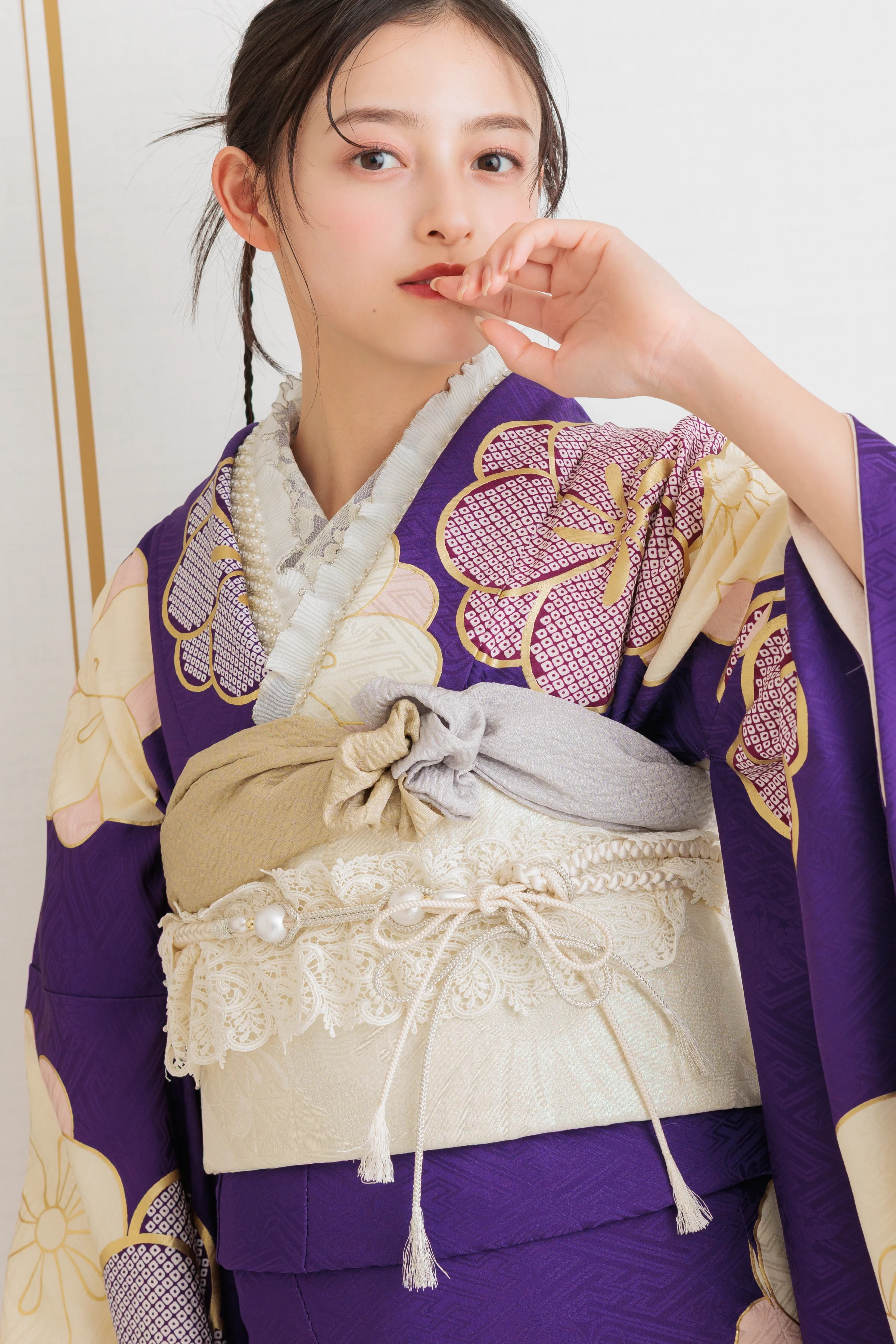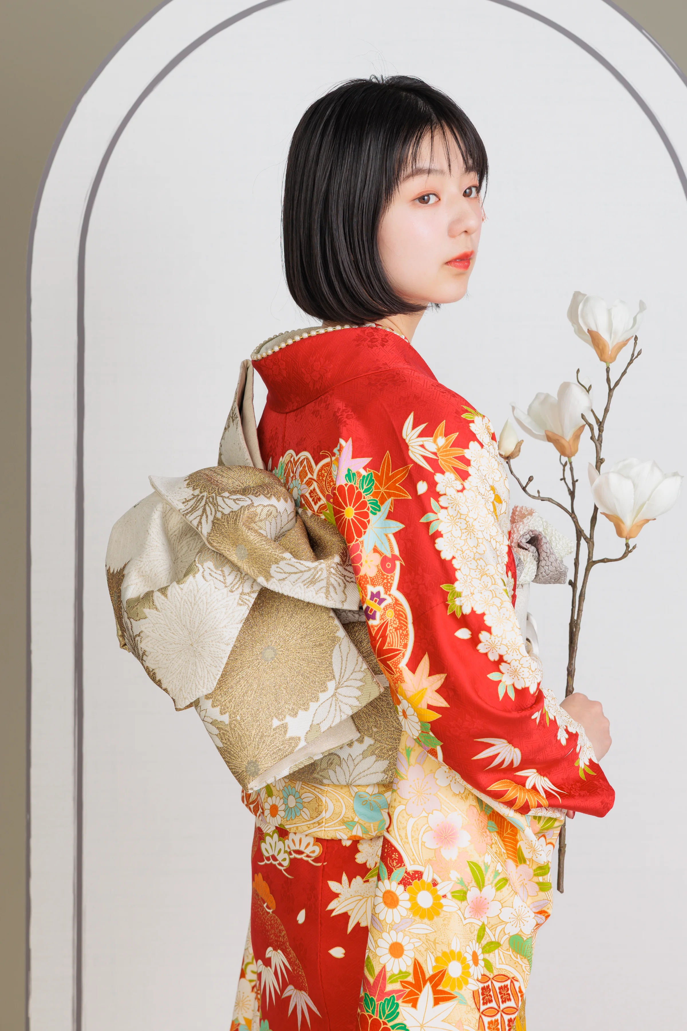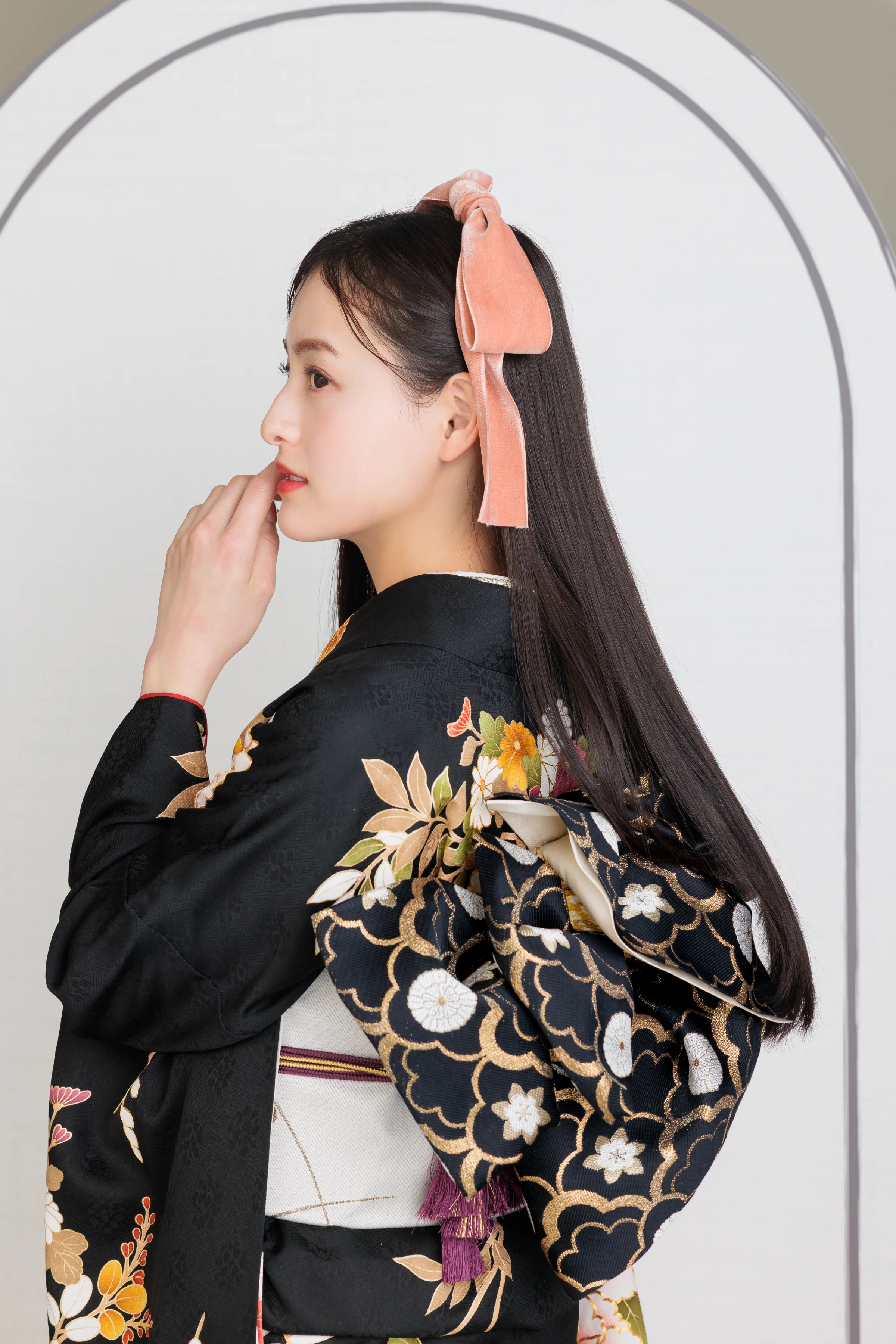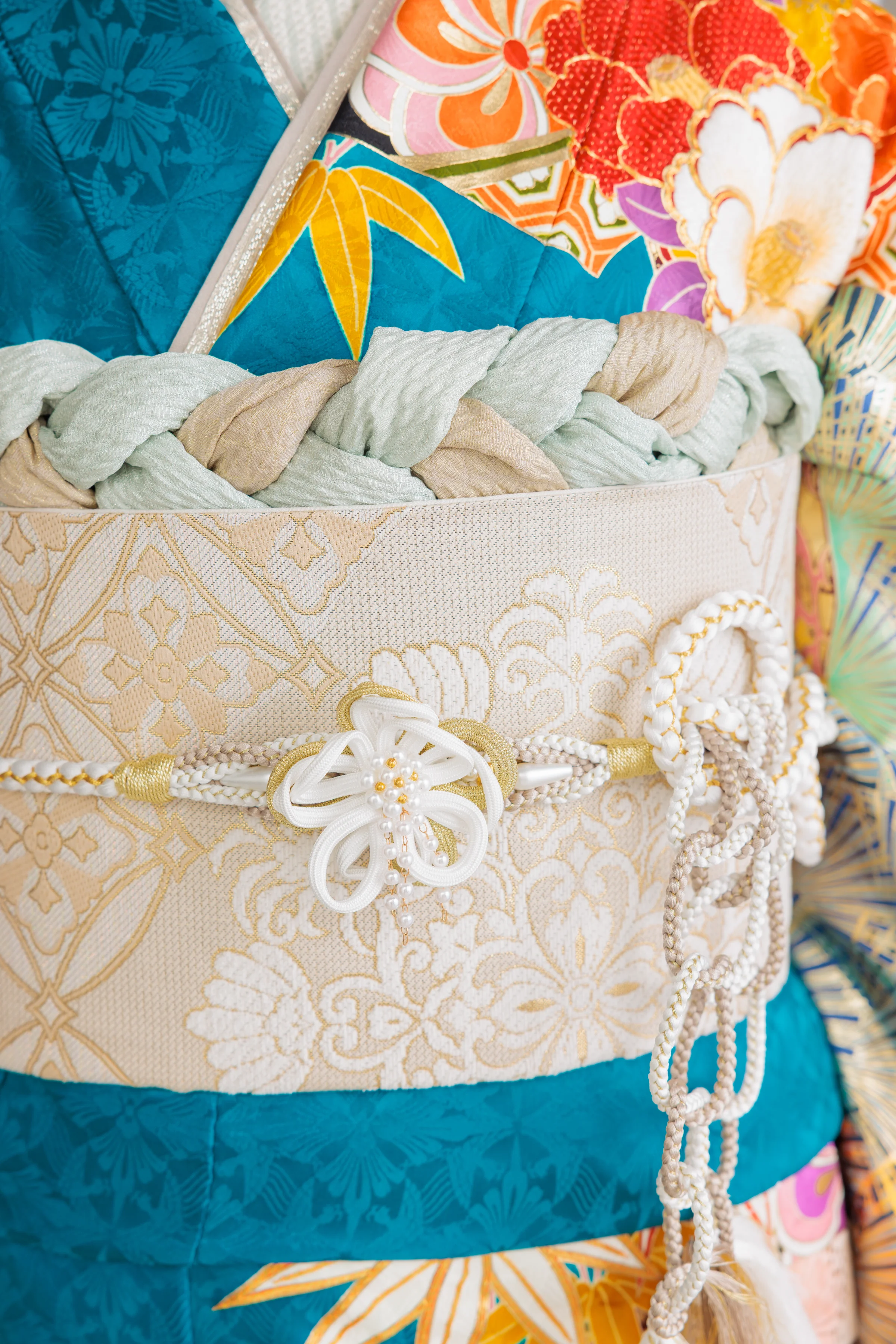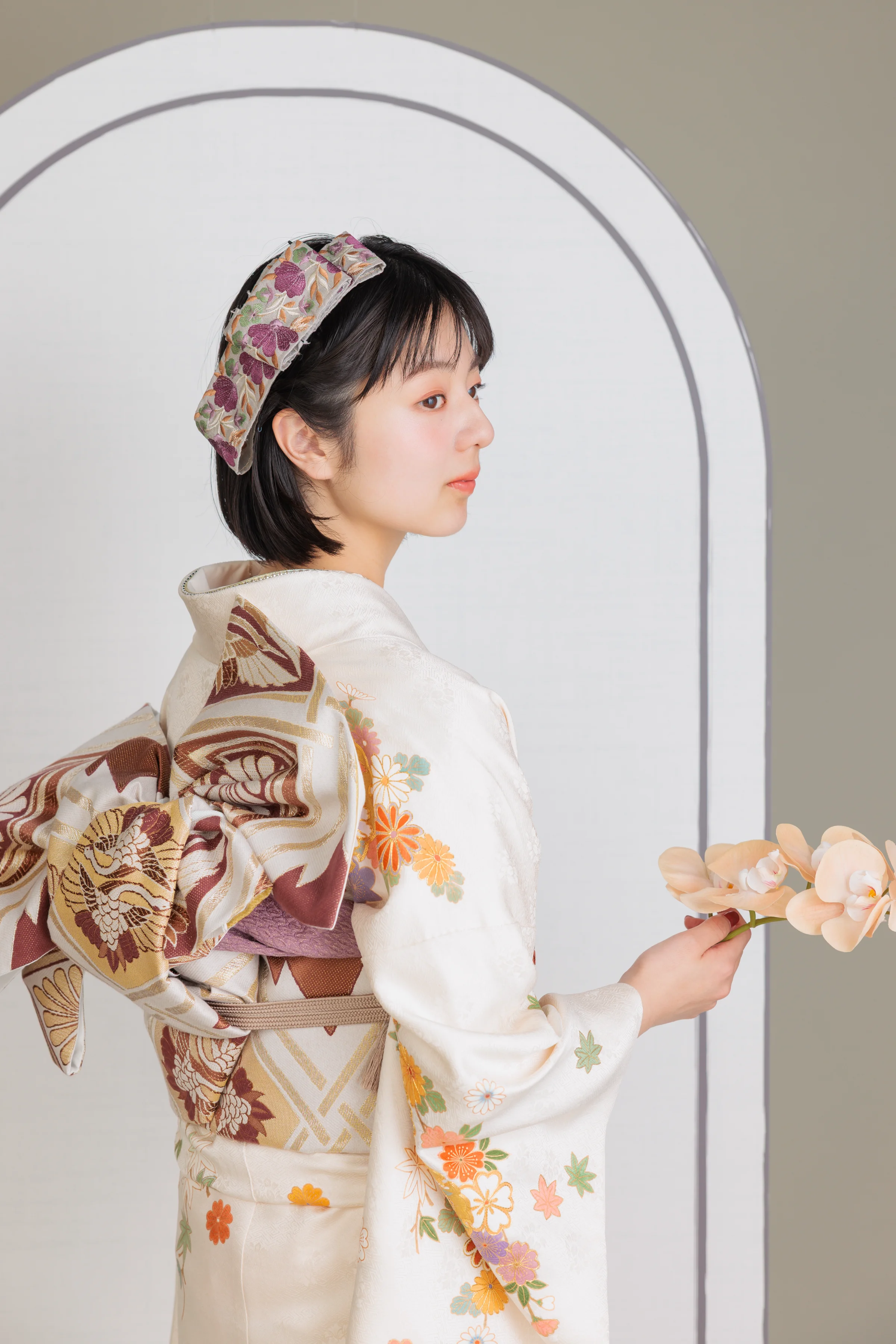 後ろ姿をおしゃれに飾る袋帯。アレンジ自在で自分らしい振袖姿が叶います。