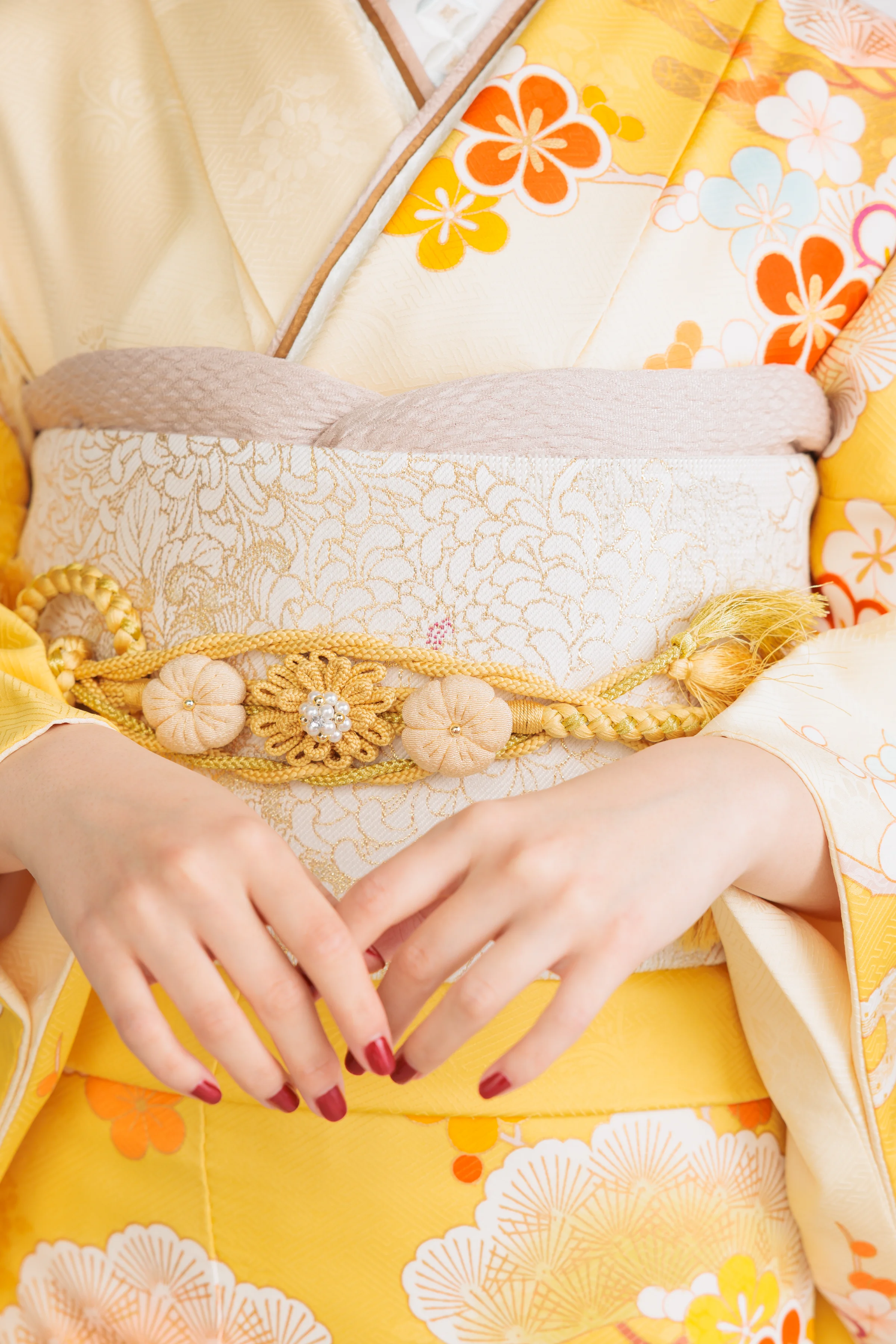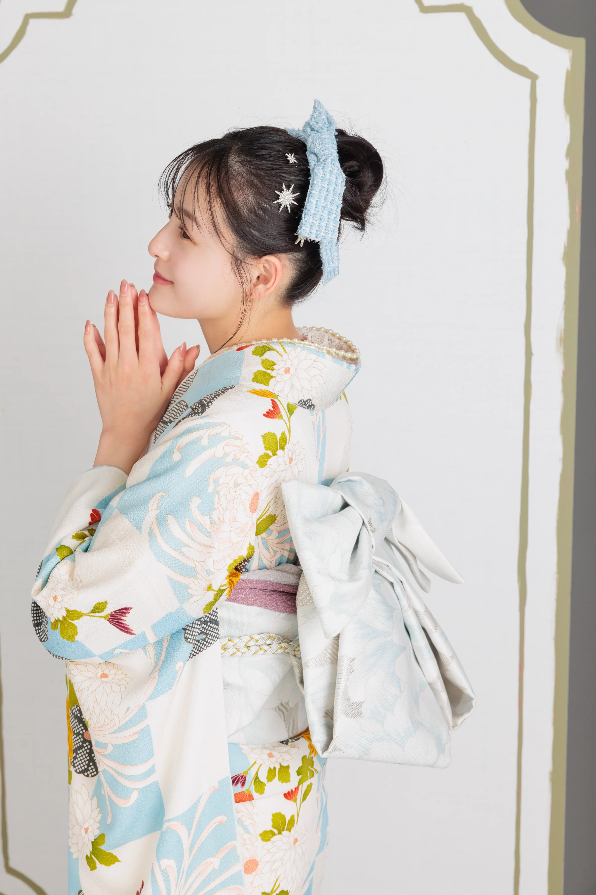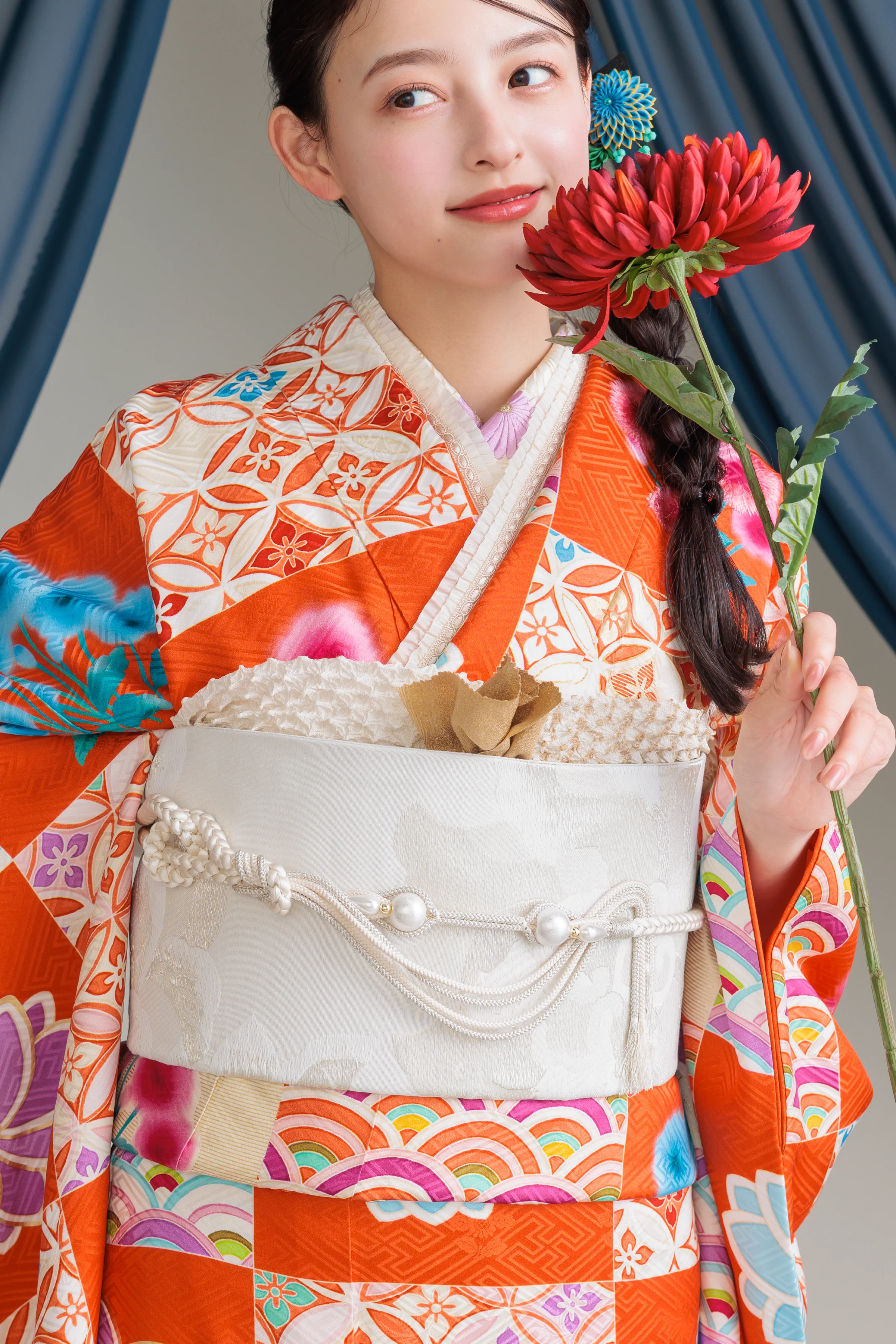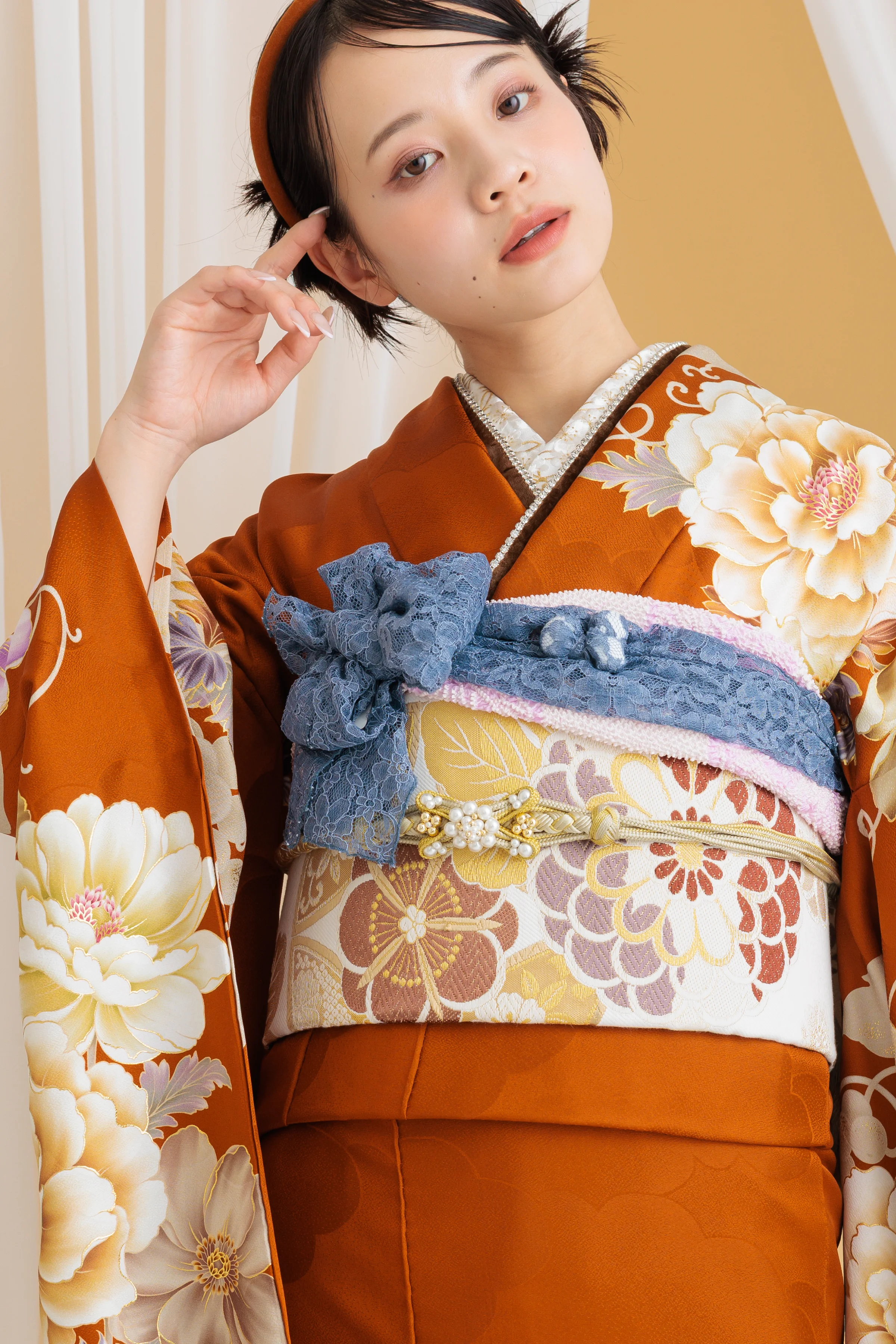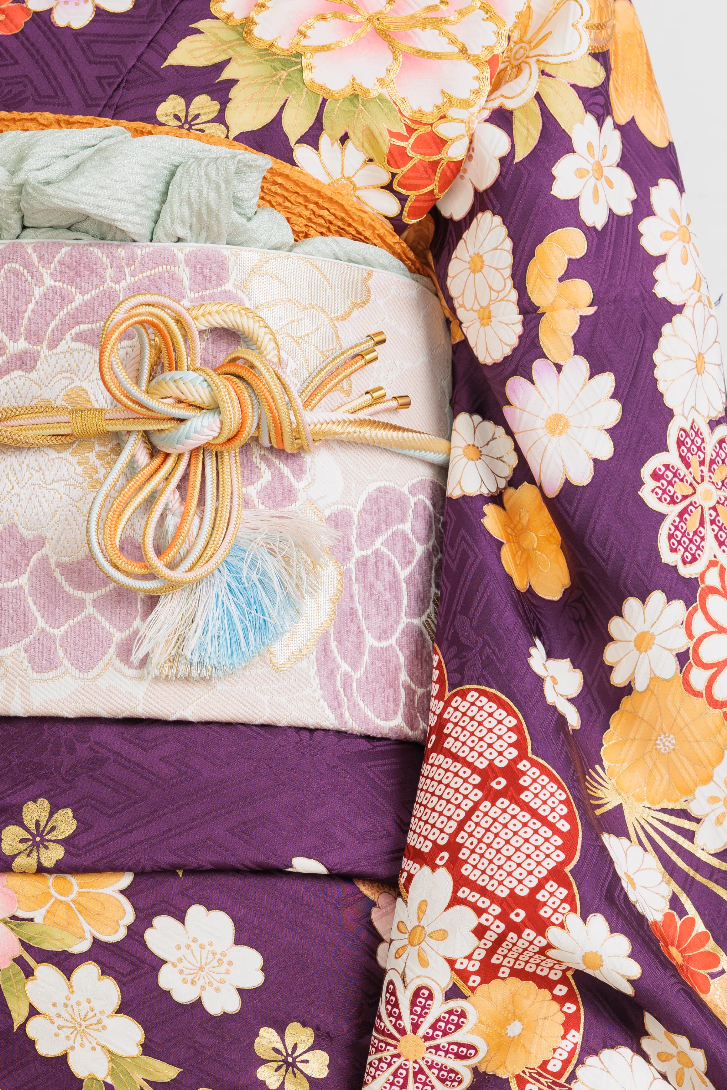 後ろ姿をおしゃれに飾る袋帯。アレンジ自在で自分らしい振袖姿が叶います。