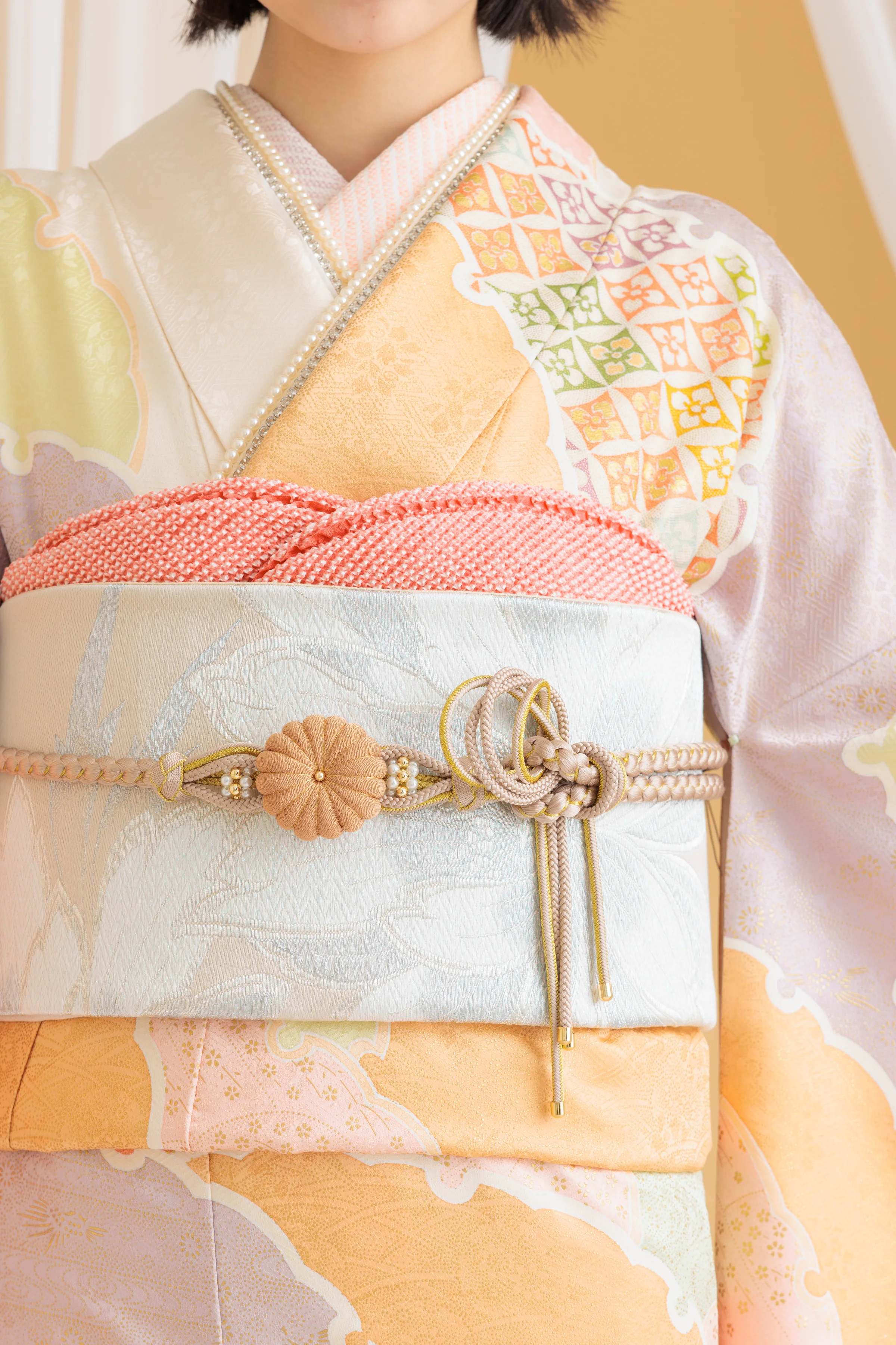 振袖コーディネートのアクセントになる帯締め。さまざまな飾りがついた遊び心あるデザインをお選びいただけます。