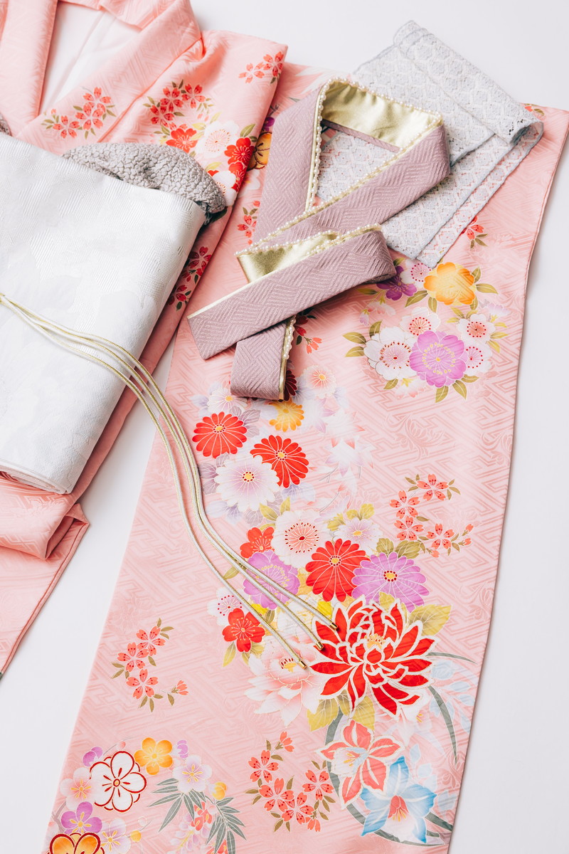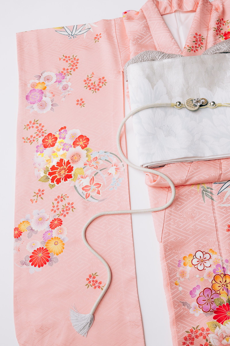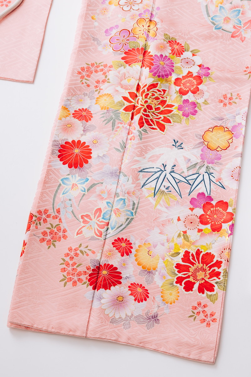 品番 613398 / ピンク地花丸に変り金糸牡丹