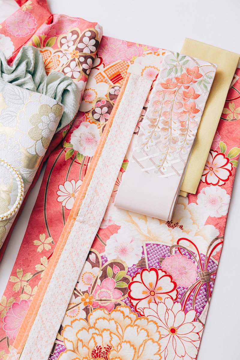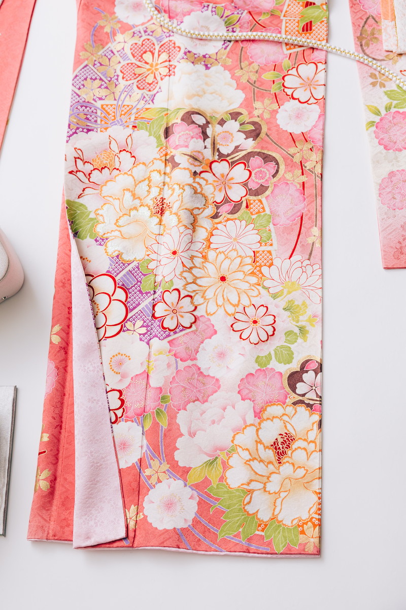 品番 613116 / ピンク地刺繍牡丹に匹田花檜扇