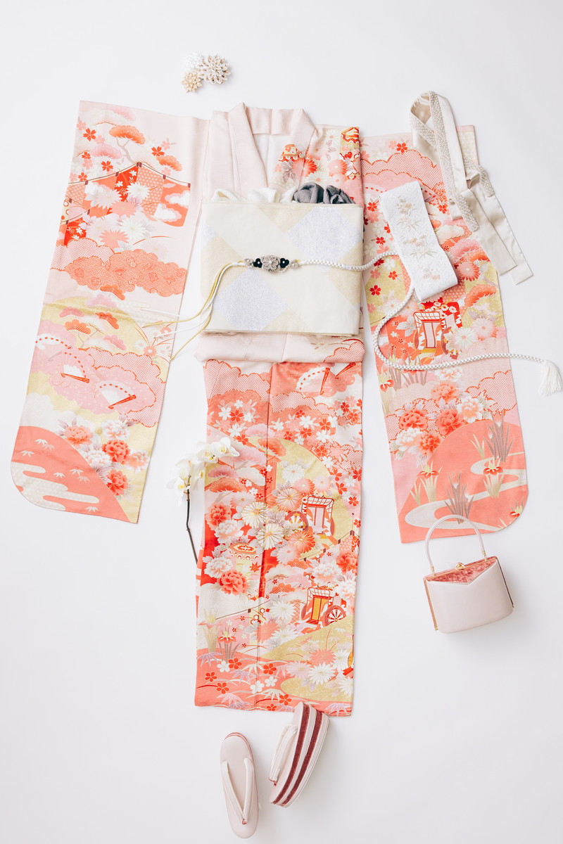 613486 / ピンク地菊御所車に貝桶